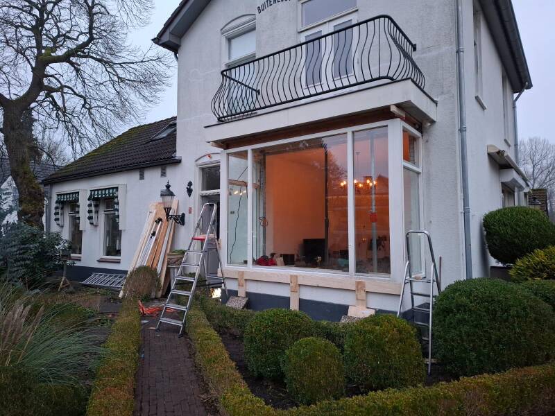 Plaatsing nieuwe kozijnen/glas erker Wenum Wiesel (Apeldoorn)